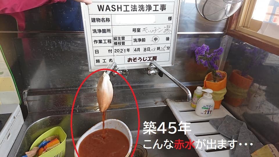 今回の案件は、築45年の戸建て住宅の水道管・お湯管の内部洗浄。