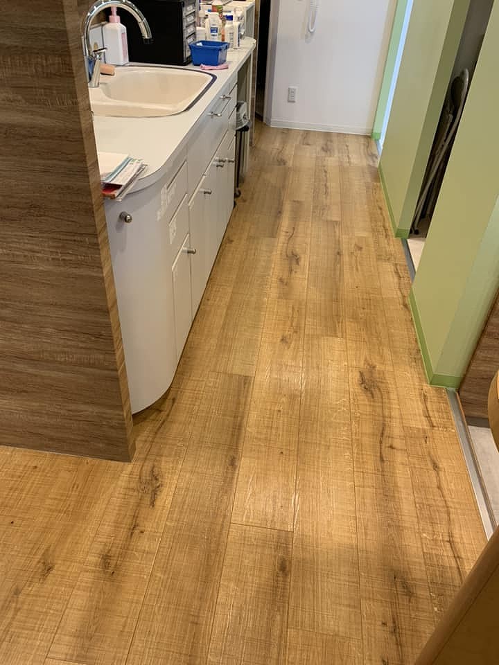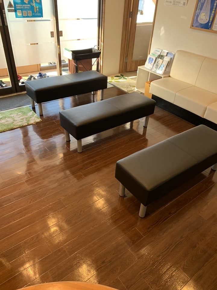 今回は、床洗浄+ワックス、診察台の椅子クリーニング、ガラス清掃など実施したとの事。