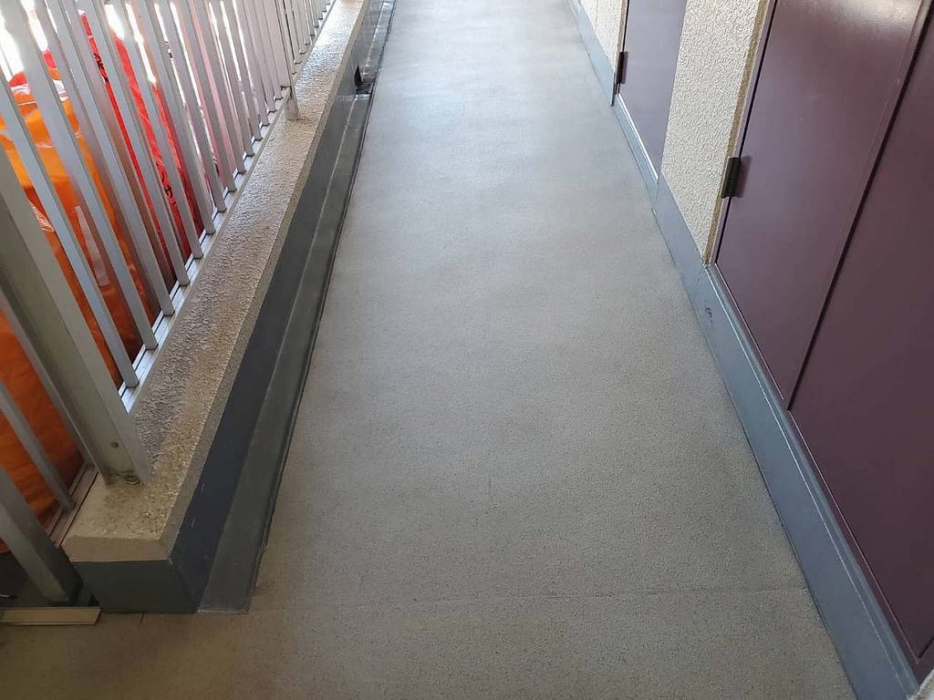 また、外廊下ですから近隣に水しぶきや汚水を飛ばしてはいけませんので、その辺りも気配りも重要です。
