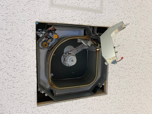 天井埋め込み型の業務用エアコン。
