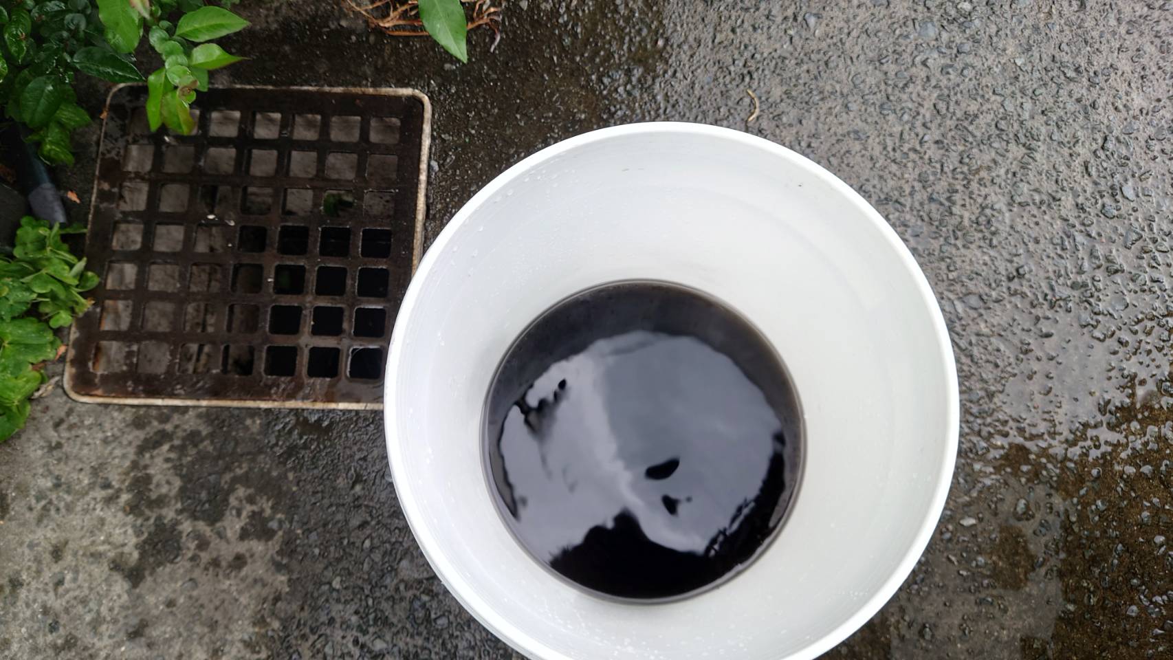 (画像のように汚水は真っ黒。でもエアコンクリーニングした時はこれが普通です)