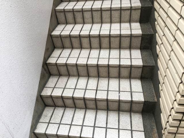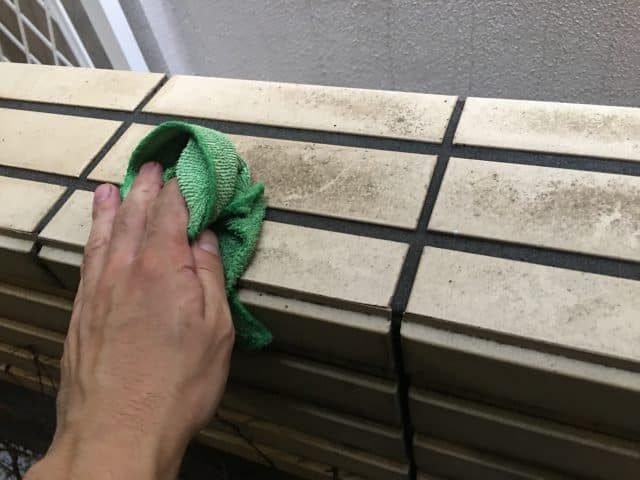 タイル部分や石材部分には土砂や埃、コケやカビなどが付着しておりますので丁寧に洗浄いきました。