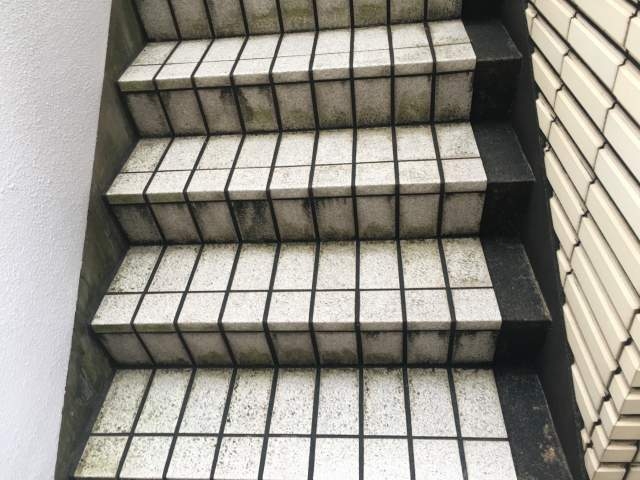 タイル部分や石材部分には土砂や埃、コケやカビなどが付着しておりますので丁寧に洗浄いきました。