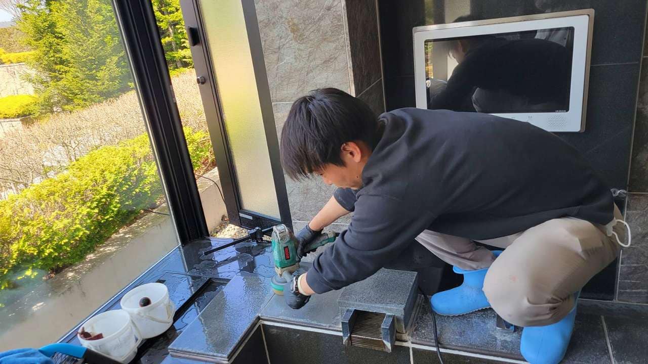 山梨県より「高級旅館の客室内浴槽エフロ除去・防滑作業」