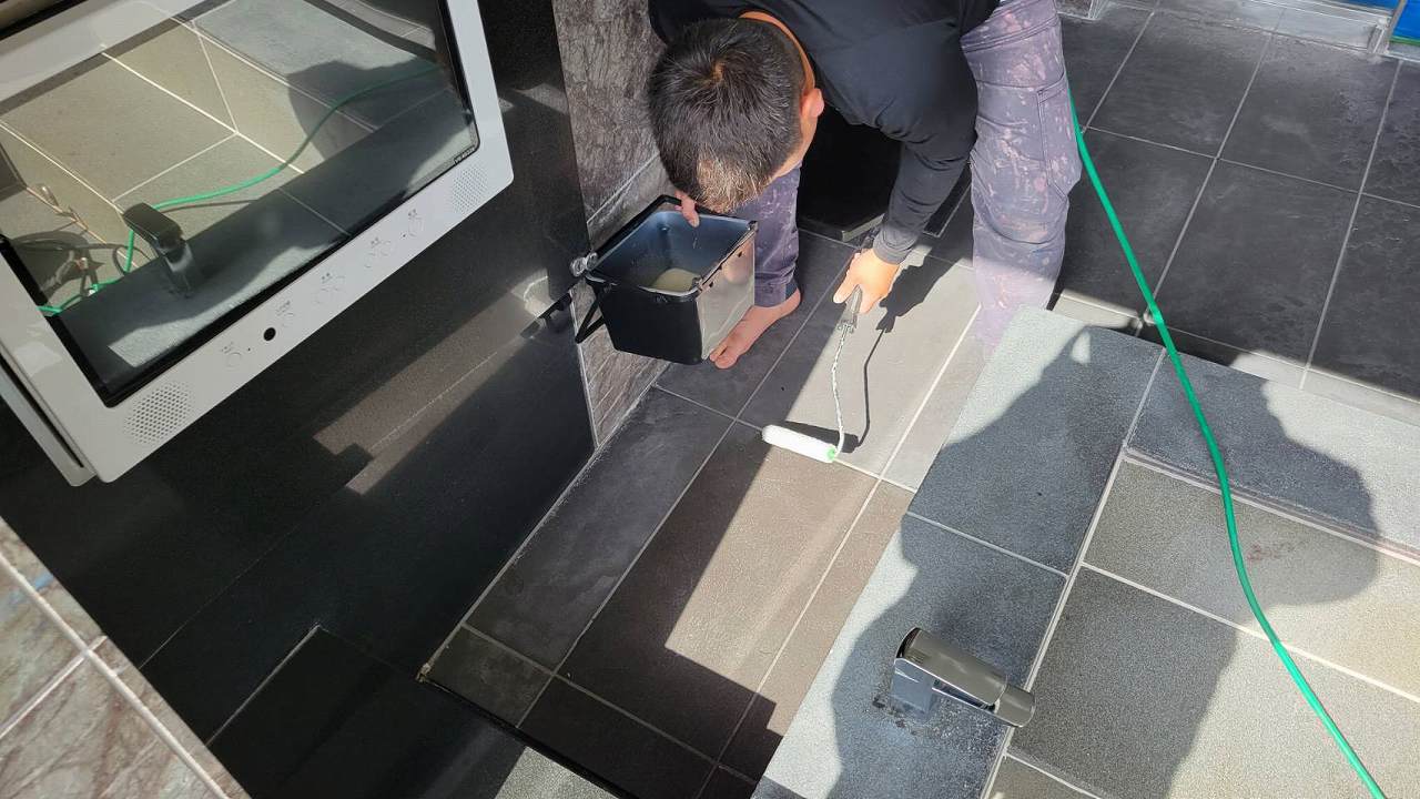 そして、床が滑りやすくなっているので、安全の為に滑り止め施工(防滑施工)