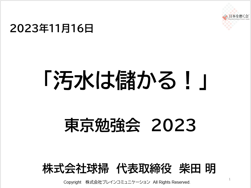 3.東京都の会員でもある(株)球掃の柴田社長にご協力頂き「汚水は儲かる」という経営者向けセミナー
