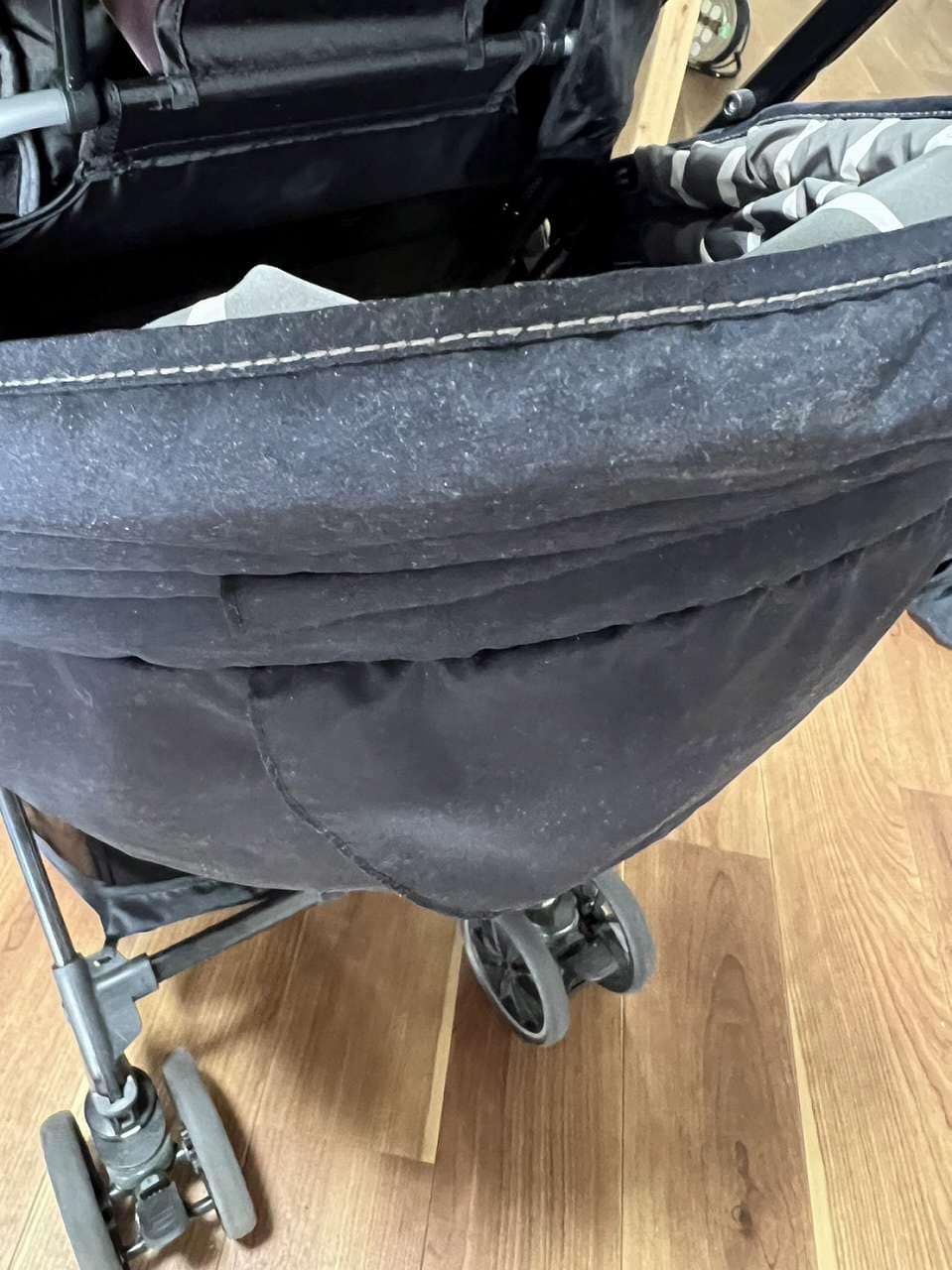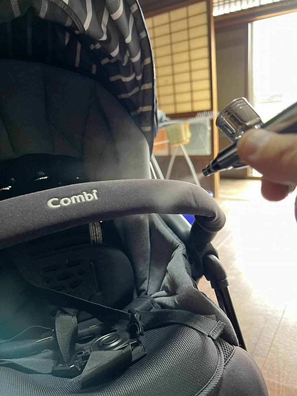 今回のベビーカーは、クリーニング後に抗菌・防汚の光触媒コーティングを施工しております。