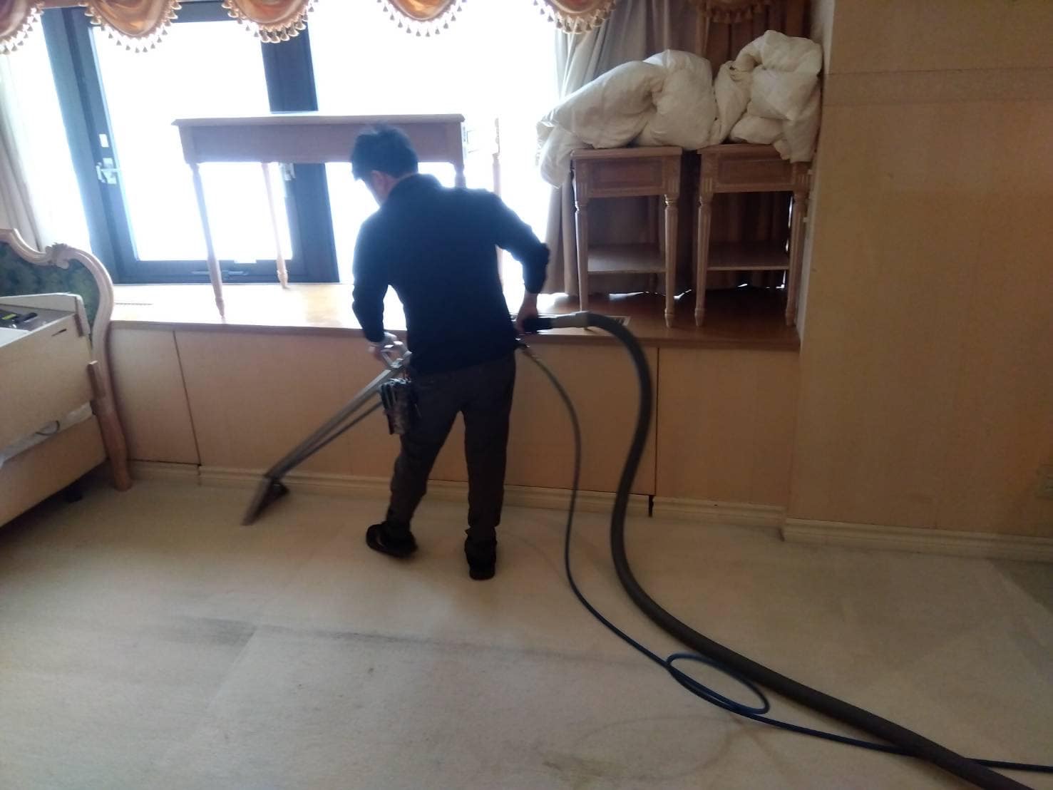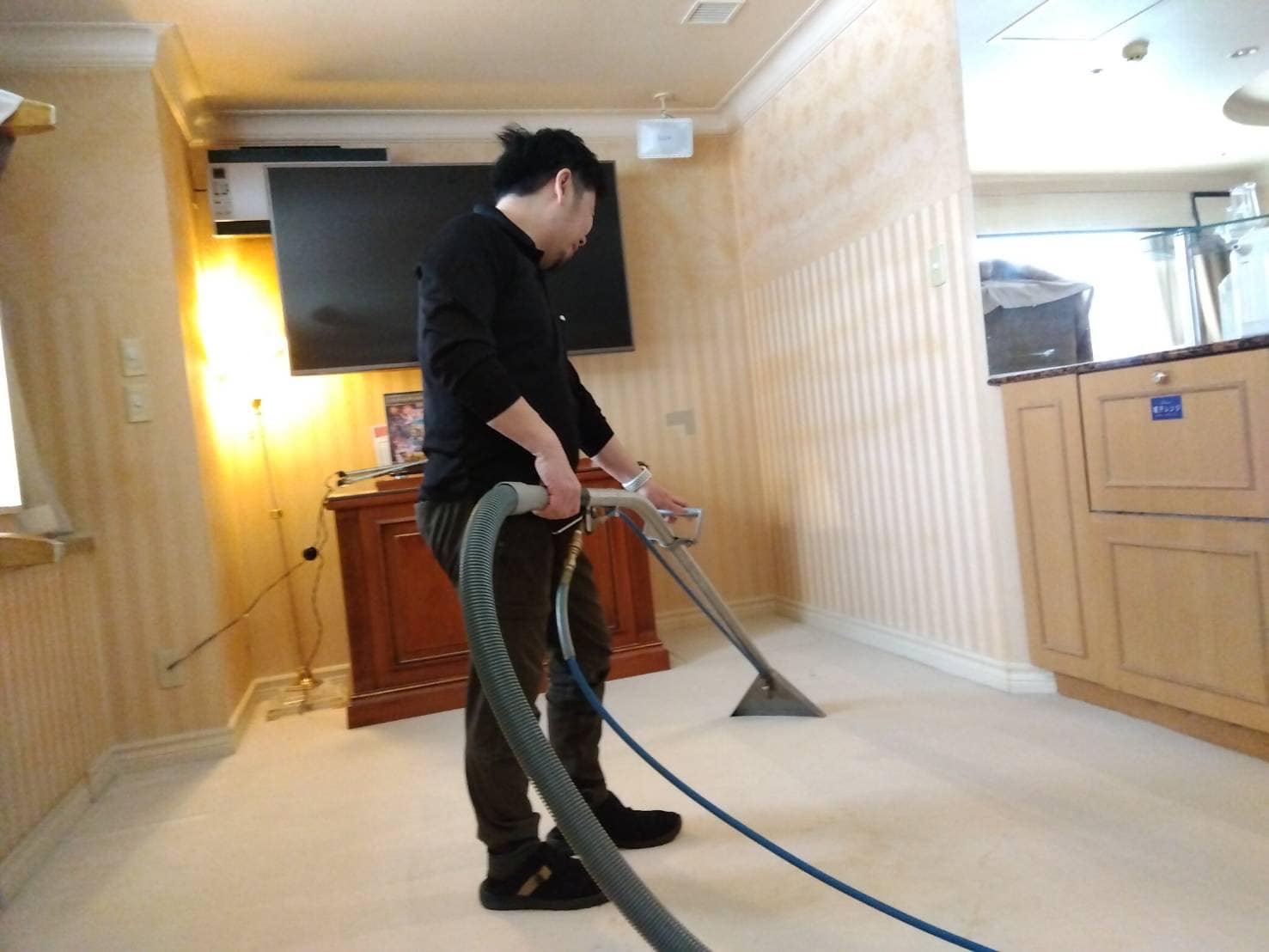 今回は、カーペットクリーニングという事で大型の家具なども移動しながらの作業