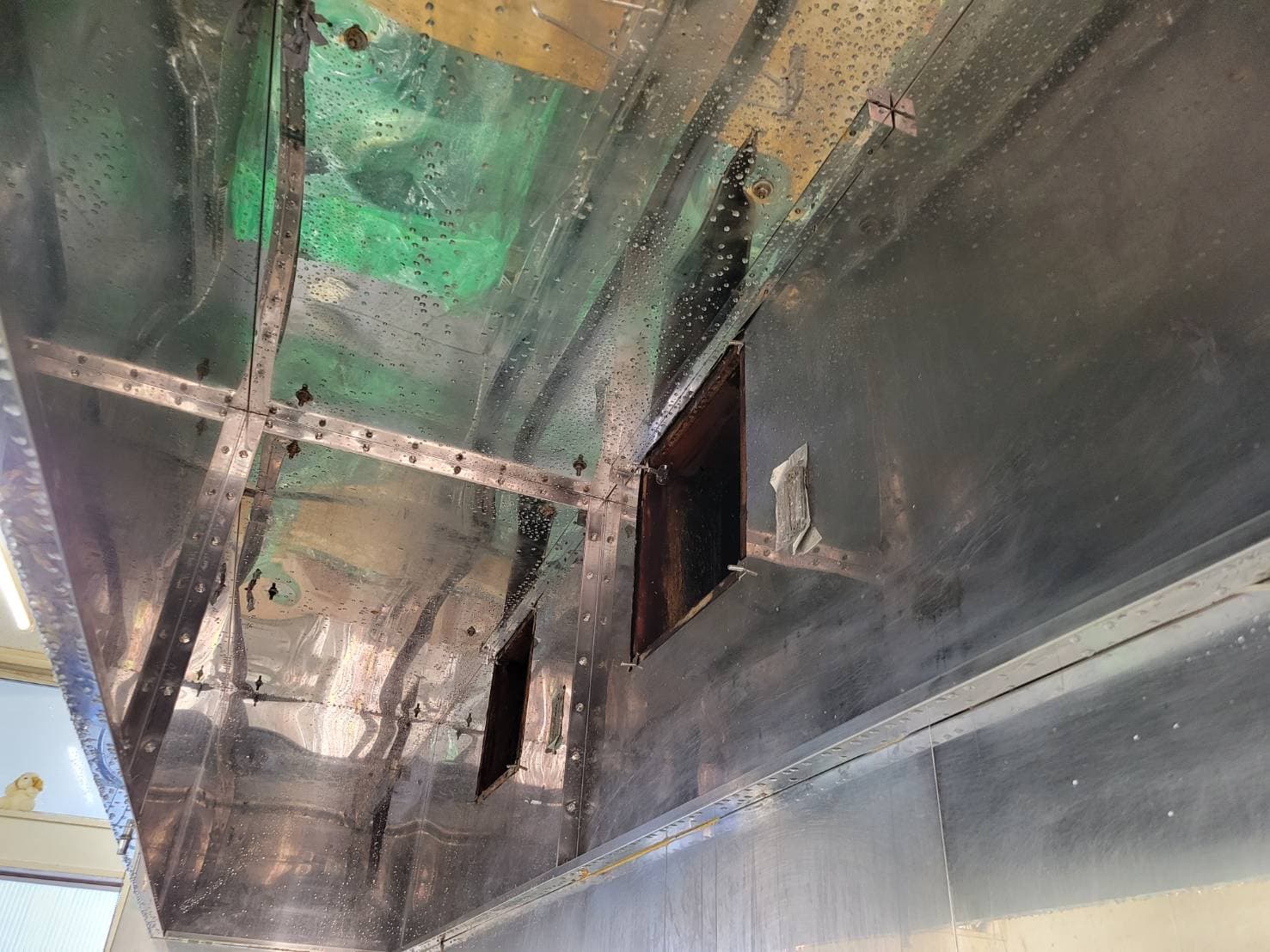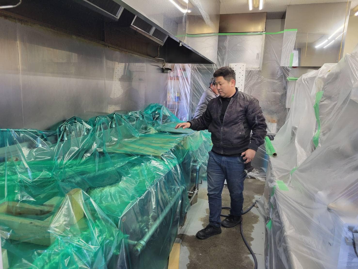 その後、養生を万全にしてから、グリスフィルターなど外せるものはすべて外します。