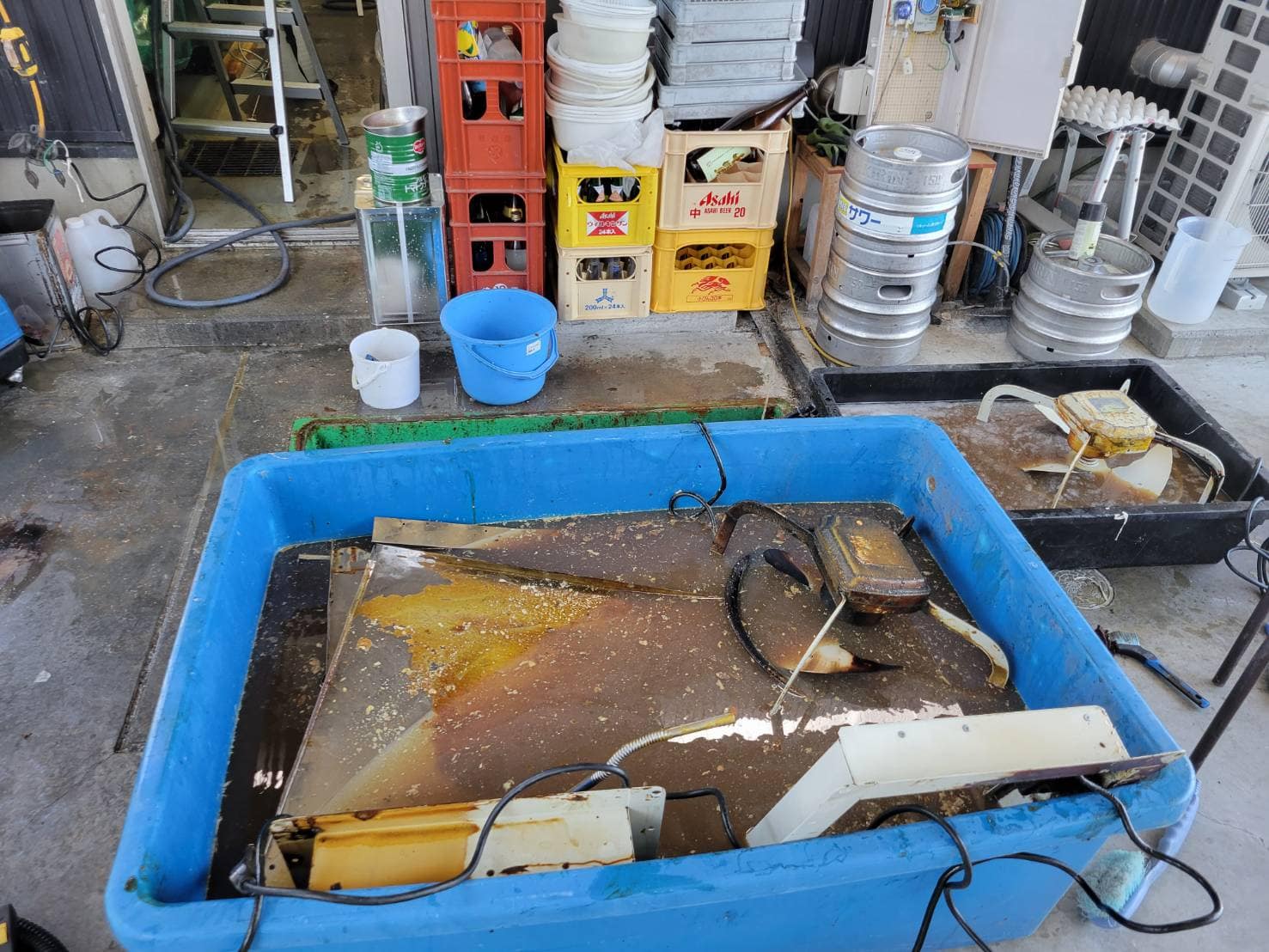 外したものは、洗剤に漬け込んで、熱をかけて油分がより効率的に分解されるようにして進めます。