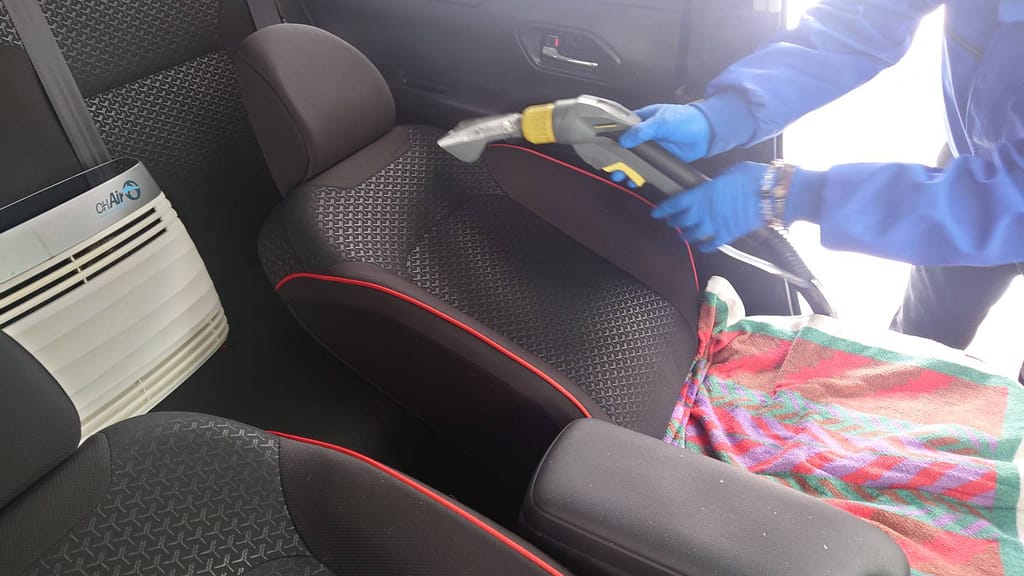 4.車内全体とマットを洗浄、シートベルトは拭き上げをして室内全体を拭き上げします