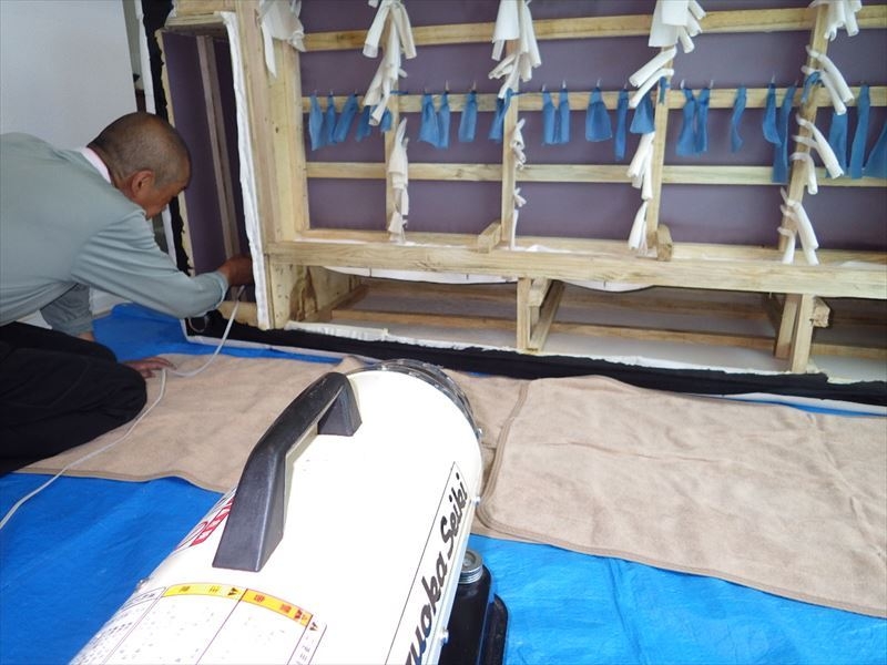このカビを丁寧に処理して、その後の防カビ施工を実施しました。