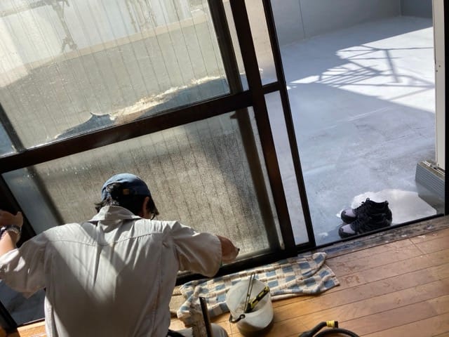 東京都調布市の会員企業から「汚れの酷い空室のガラスクリーニング」