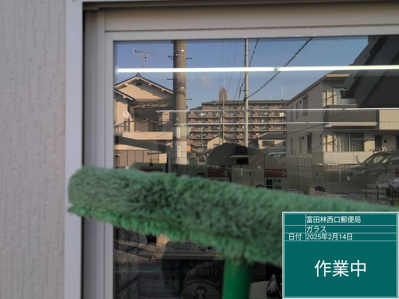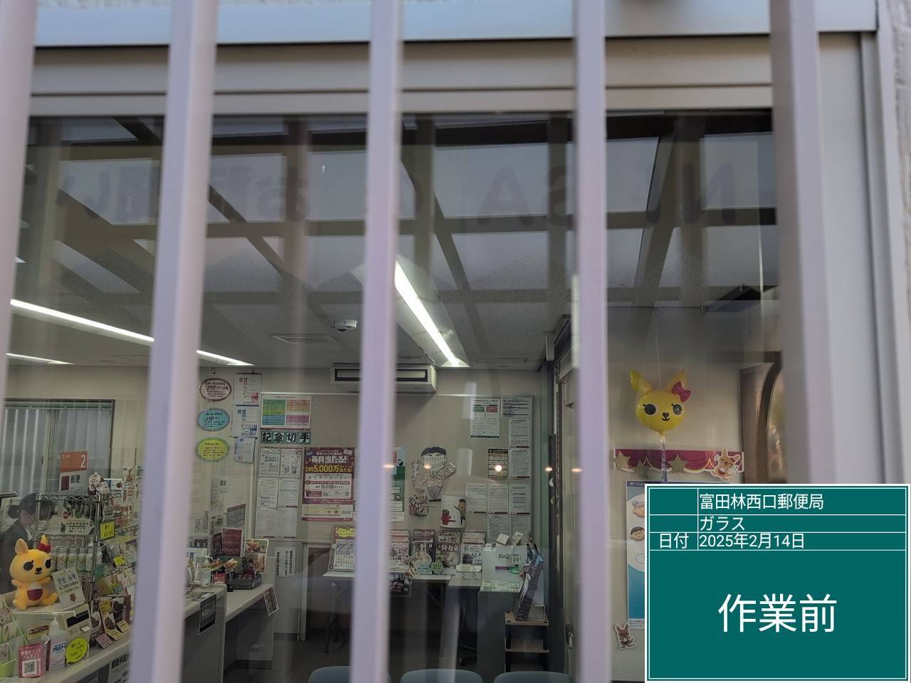 清掃間隔が長い郵便局だと約4年振り、短い郵便局でも2年振りとの事で、やはり床もガラスも清掃前は汚れていました。