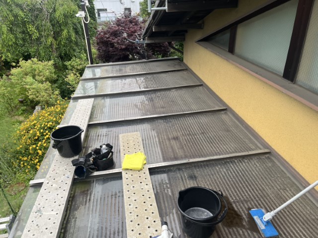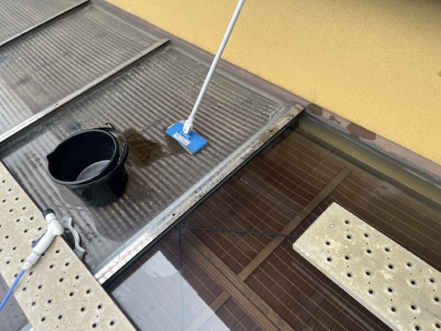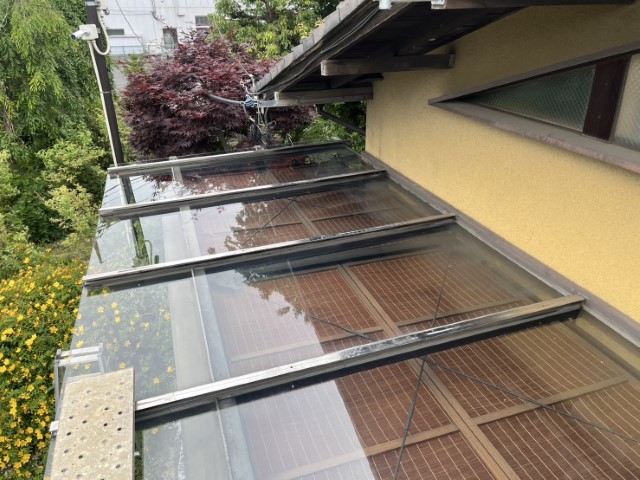 お客様がお住いのお宅、ガラス屋根の洗浄。
