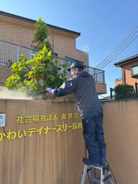 「保育園様の塀を安全な薬剤を活用しクリーニングした」と